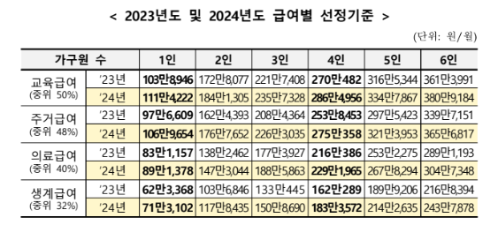4인 가구 기준: 올해 540만 964원 대비 6.09% 인상된 572만 9,913원